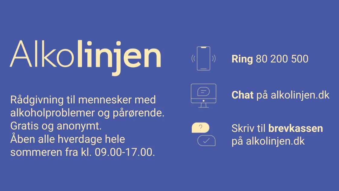 Hos den nationale rådgivning Alkolinjen kan du bl.a. teste dit alkoholforbrug og læse andres historier om deres egne eller deres pårørendes alkoholproblemer.