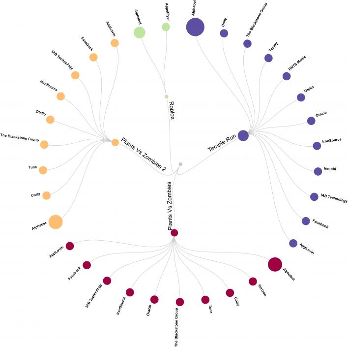 - Data der deles med tredjeparter, dvs. firmaer der yder en service til app- og hjemmesideudvikleren og derigennem får adgang til data om brugeren.